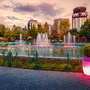 Skanderbeg-Platzes mit beleuchtetem Brunnen in der Hauptstadt Albaniens - Tirana