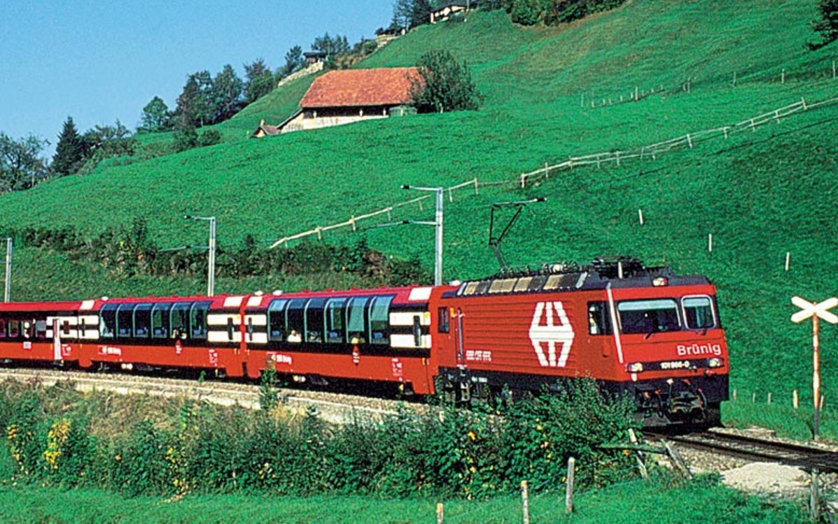Genießen Sie den Ausflug mit dem Golden Pass Panorama-Express von Sarnen über den Brünigpass nach Interlaken mit dem grandiosen Blick auf das imposante Jungfraumassiv und weiter entlang der "Riviera des Berner Oberlandes" mit Ausblicken auf die "Pyramide der Schweiz" nach Thun am Thunersee. Am Nachmittag geht es durch die zauberhafte Hügellandschaft des Emmentals zur Bergkäserei in Marbach.